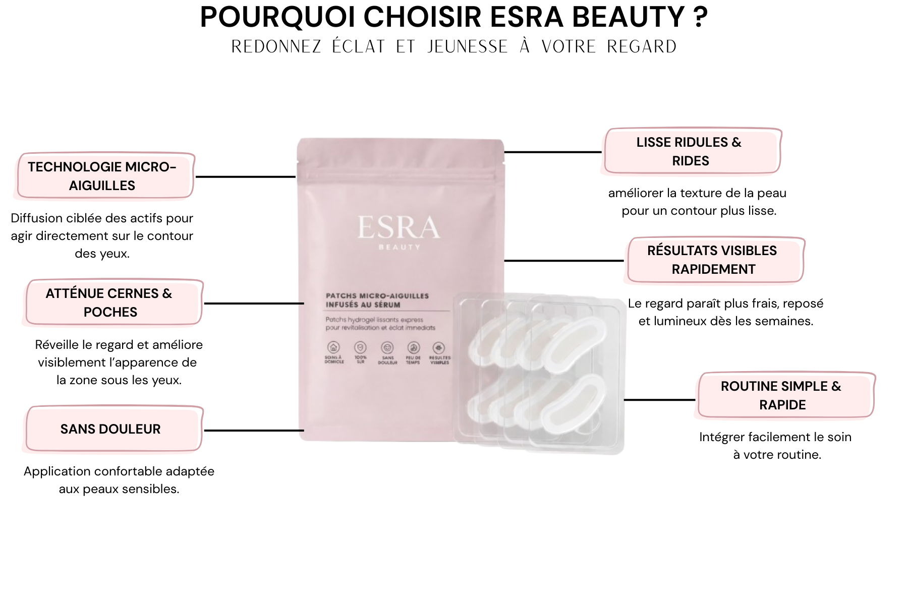 Les patchs micro-aiguilles revitalisent le contour des yeux et aident à éclaircir visiblement le regard dès les premières utilisations.